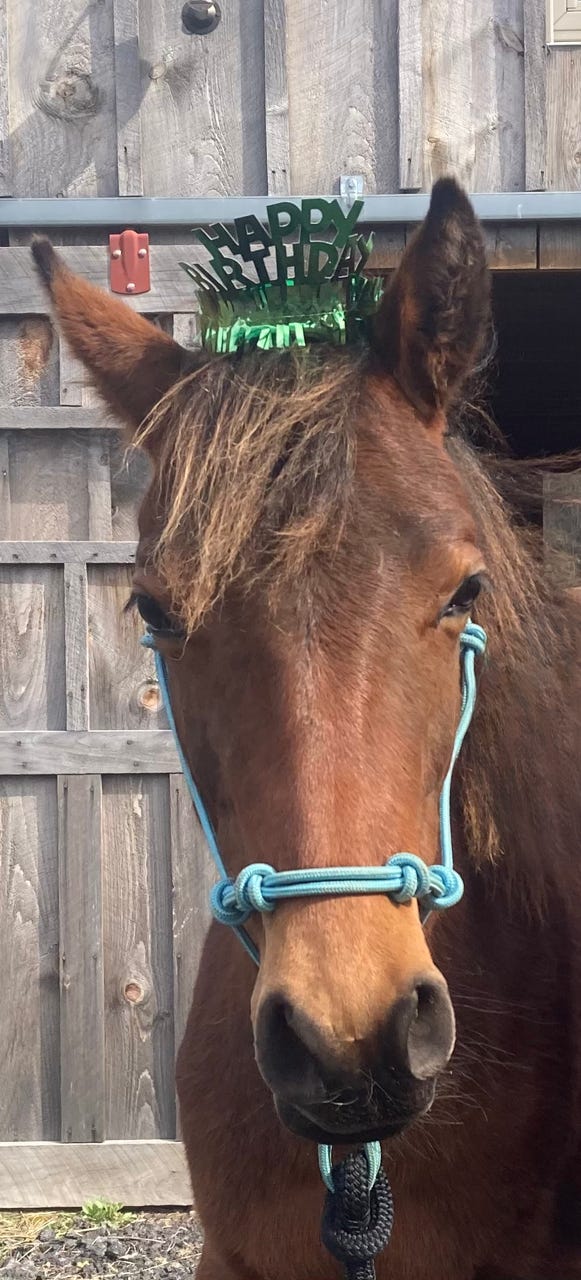 Winston’s first birthday was March 16. He wasn’t a fan of the birthday crown or the birthday donut holes, but as always he was grateful for attention and horse treats.